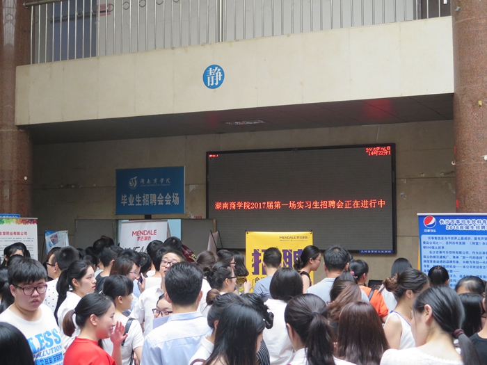 北京银行股份有限公司、湖南梦洁家纺股份有限公司、百事可乐股份有限公司等36家知名企业参加了本次招聘会,提供1000余个岗位,招聘专业涵盖了我校大部分专业。本次招聘会分为线上、线下,线下招聘会首次使用电子签到,能精准统计每一位参会毕业生的所属学院、专业以及就业去向;线上招聘会,同学们可以选择网投简历,接受用人单位的挑选,本次实习生招聘会线上浏览量达18000人次。 现场气氛火爆,近1000名同学参加了本次招聘会。四百多名2017届毕业生与用人单位已达成了实习意向。在招聘会现场交流过程中,用人单位表示,我校同学专业基础比较扎实,综合素质较高,但在实践经验和就业能力方面需要进一步提升,他们希望毕业生积极参与到暑期的实习实践,全面提高就业竞争力。 本次实习生招聘会邀请了湖南凹凸人集团负责人在招聘会现场为同学们做简历诊断,帮助同学们在简历制作中扬长避短、脱颖而出。 至此,我校2016届毕业生就业工作基本结束,2017届毕业生就业工作正式启动。据统计,我校为2016届毕业生共举办专场招聘会214场,提供岗位12892个;各类中型招聘会42场,企业1276家,提供岗位21688个;大型招聘会1场,企业219家,提供岗位6008个;以投简历到邮箱招聘的企业1796家,提供岗位22533个。2016届毕业生人数与岗位数之比为1:18,2017届我校毕业生就业工作将更注重全面提升毕业生的就业能力,提高毕业生的就业质量。 据悉,我校还将在6月14日下午举行第二场实习生招聘会,欢迎我校大三同学,以及大一、大二同学踊跃参加。(招就处 曹东)