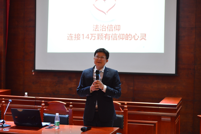 6月6日晚,第五十期“麓山校友,企业家论坛”在乐知楼F101模拟法庭举行。此次讲座有幸邀请到法学院06届毕业生,长沙市律师协会青年律师委员会副主任,中国法治信仰志愿者联盟发起人何俊锋律师主讲“法治信仰”。法学院党总支书记刘期湘教授,学工办主任袁露老师出席了此次讲座,法学院百余名学生聆听了此次讲座。