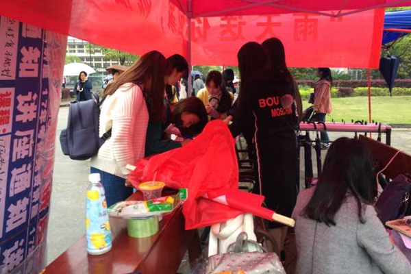 3月29日,由我校大学生心理健康教育中心主办,大学生心理健康教育协会承办的(以下简称“心协”)的公益伞活动在英才广场正式拉开帷幕。 ![]() 上午10点左右,正当所有的前期工作都已做好,雨便淅淅沥沥地下了起来,而这个时间段,大多数同学都没有带伞,这时公益伞便充分发挥了它的作用。心协一共定制了100把伞,在高峰期一共借出了40多把。 ![]() 此次活动以“雨天送你回家,诚信送我返校”为主题。旨在解决商院师生的雨天出行问题,让出行没有后顾之忧,同时希望借此活动在莘莘学子间广泛传递关爱,倡导诚信,收获一份美丽的心情。 长沙的天气多变,不论什么季节,常会突然间下起雨,一大群同学在教学楼大厅内不知所措,思虑后的选择也只有两个:要么冒雨前行,要么等待同学送伞。“给忘记带伞的同学提供伞,让雨天也变得美丽。”会长周恋芹自豪地说道。 据了解,此次活动的物资准备十分充足:分别在乐知楼、日新楼、至诚楼内设点摆放一个伞架,并配备二十把伞,每把伞上会贴上教学楼的名称和编号,便于清查和归还。 为了更好地服务商院学子,心协外联部干事会于单周周三和周日进行雨伞清查,双周周三和周日则由素拓部干事进行雨伞清查,并将清查结果在当日19:00前反馈至网推部,以便借伞同学及时归还相应编号的伞。 赠人玫瑰,手留余香,借一把伞,得一份暖。公益,是一件很小的事;公益,也是一件很大的事。一把伞为你遮挡风雨,一把伞为你送去温暖。一个小小的帮助,可以让人心溢满暖暖的感动,一把小雨伞,带给人的是无限的方便。(刘锦)