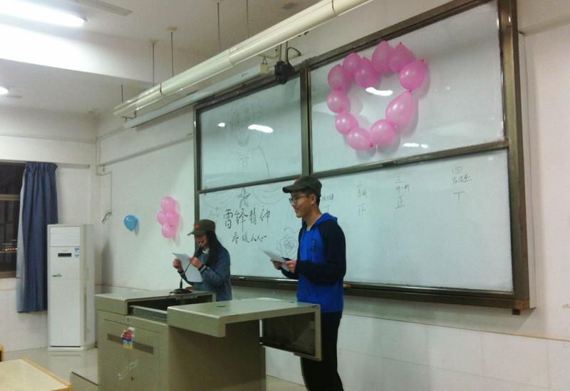 3月6日晚,财政金融学院“学雷锋”主题团日活动正式开启,学院所有班级在指定的时间、地点组织开展了主题团日活动,正式拉开了“公益三月,情暖春天”学雷锋主题实践活动月的序幕。 此次团日活动主要包括朗诵雷锋诗歌、讲述雷锋故事、评论现实事件、观看雷锋电影、学习雷锋精神、雷锋知识竞赛等活动环节,内容丰富多彩,形式多种多样,让同学们在和谐欢乐的氛围中认识雷锋、学习雷锋。 朗诵雷锋诗歌环节由主持人介绍完雷锋的生平优秀事迹后,全体同学起立朗诵歌颂雷锋的诗歌《雨水》;讲述雷锋故事环节由学生代表畅谈自己对雷锋同志的了解,结合自己的生活经历诉说自己对雷锋精神的领悟;评论现实事件环节由同学们结合当代所发生的一些典型性的事情进行讨论,体会雷锋精神的重要性。例如:小悦悦事件、老人摔倒扶不扶等社会热评问题;观看雷锋电影环节由主持人组织全体同学认真观看《青春雷锋》,这部电影记述了雷锋的一生,极具感染力和吸引力;学习雷锋精神环节由主持人结合精心制作的PPT讲说雷锋是何许人、雷锋有怎样的人生经历、雷锋有哪些优秀事迹和雷锋的精神品质;雷锋知识竞赛环节将团日活动的气氛推向最高潮,同学们在课余时间通过网络、书籍等载体中学习到的雷锋知识在抢答中得到充分施展,比赛结束后,答对最多的同学获得了印有“雷锋”字样和头像的笔记本奖品。此外,各班结合各自的创意还开展了我说你猜、情景表演、故事串联、学习雷锋百篇日记等活动环节。 “公益三月,情暖春天”学雷锋主题实践活动月的系列活动将陆续开展,青协志愿者活动、校园环境净化活动、雷锋精神的宣传普及活动等将继续为同学们学习和实践雷锋精神提供更多的平台,帮助同学们树立健康向上的世界观、人生观、价值观,成为爱国、敬业、诚信、友善的社会主义好青年。(财政金融学院 张高阳 石晶)