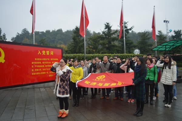 2015年11月28日,经济与贸易学院学生党支部组织全体支委干部、学生党员及党员发展对象前往韶山、花明楼参观学习。党员同志们在毛主席铜像前庄严的宣誓,并参观了毛泽东、刘少奇两位主席的故居及纪念馆。