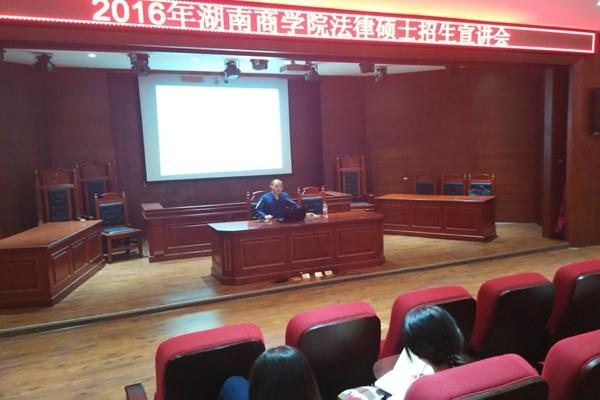 10月25日晚,2016年湖南商学院法学院硕士招生宣讲会在乐知楼F101模拟法庭举行。法学院胡君副教授担任主讲人,近百位同学参加了此次宣讲会。