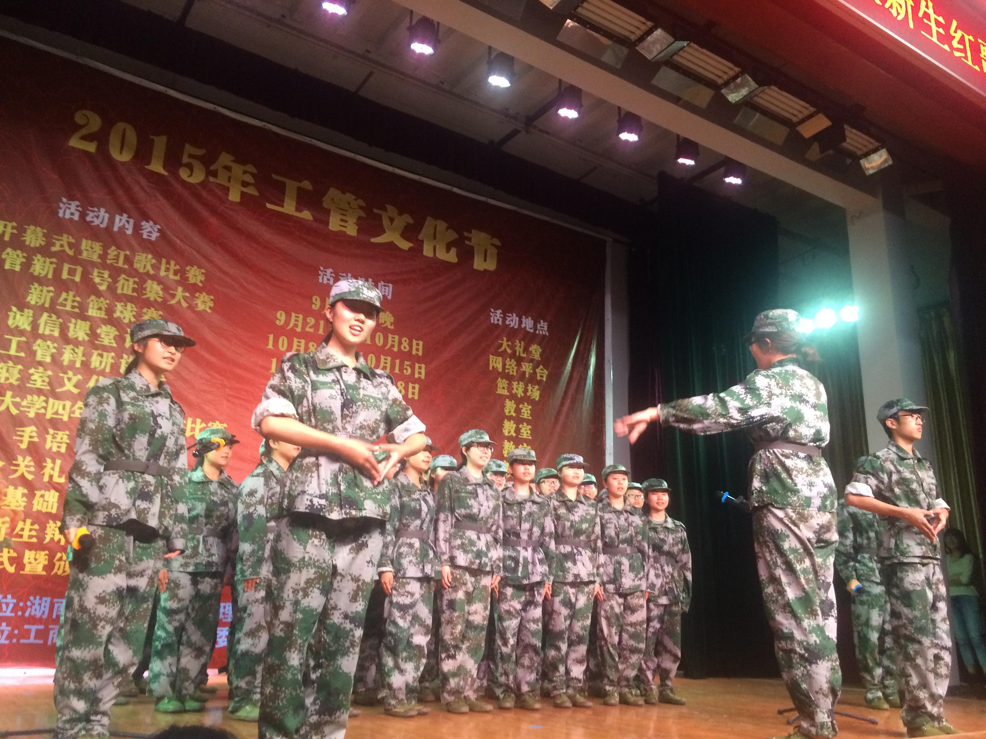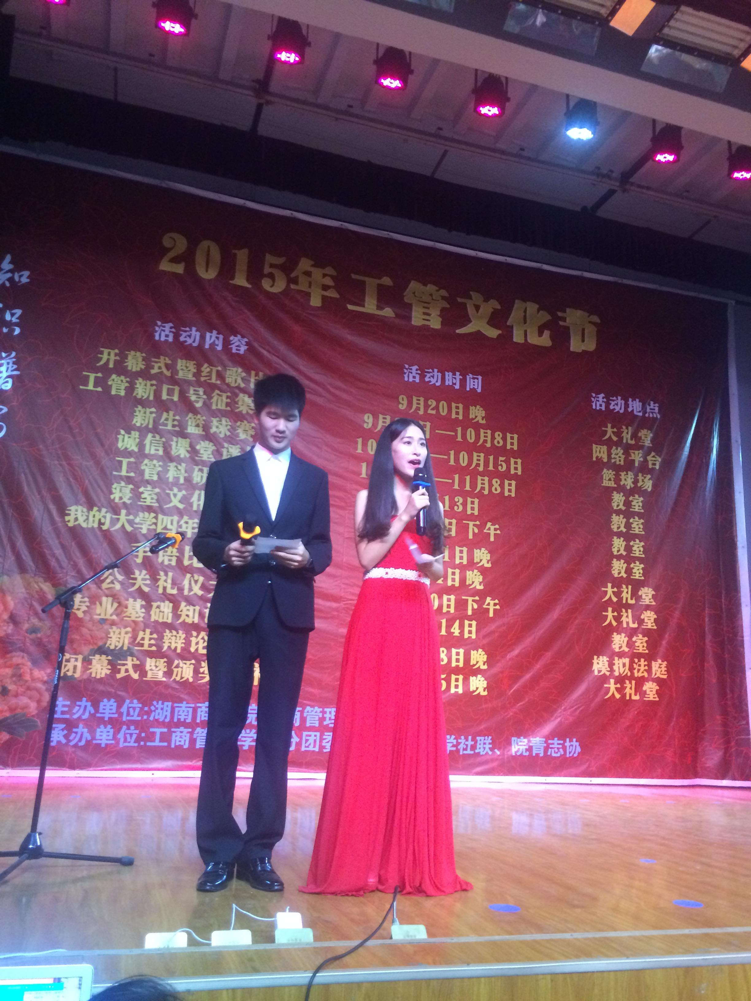 9月20日,湖南商学院工商管理学院在大礼堂隆重举行2015年工管文化节开幕式暨新生红歌比赛。工商管理学院党总支书记匡玉梅、学院其他领导、老师和各位新生军训教官等参加活动。