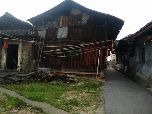 在当地居民的指引下,我们重点参观了当地最负盛名的特色建筑——窨子屋。窨子屋是侗族创造的民居建筑,为湘黔赣地区的特色传统建筑,至今有1000多年历史。窨子屋形似四合院,多为两进两层,也有两进三层或三进三层的,三层上南北间有天桥连通。它的总体结构是外面高墙环绕,里面木质房舍,屋顶从四围成比例地向内中心低斜,小方形天井可吸纳阳光和空气。据当地村民介绍,窨子屋保存最好的是“张家老屋”,但是由于年代久远、古建筑维护修缮工作的延缓,古建筑却成为了现代“危房”。