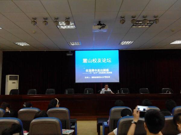 6月16日下午,旅游管理学院主办的“麓山校友、企业家讲坛”在二办301开讲,本次讲座由我校校友、现在湖南省政府办公厅工作的雷志君先生主讲。 雷志君首先讲述了自己的人生经历,从家门走出来,到学校门学习,再到机关门工作,是一个平凡的学生,一个平凡的公务员,和大家一样经历过或者即将去经历平凡之路。 他的讲座分三大版块,其一是:生无选择,必须积极的心态去迎接挑战。他坦言,当自己第二次高考被湖南商学院录取时,他认为与其浪费于高昂学费的纠结,不如迎难而上,勇敢面对挑战,讲不好哪天就可能“逆袭”,他选择读好大学,迎接挑战。其二是:谨慎选择,必须百倍的努力去实现目标。在研究生、深圳闯荡、基层公务员的三条毕业选择之路上,万般思索纠结过后,他选择了公务员的道路,在整个奋斗过程中,他并没有失去动力,反而逐渐清晰了自己的目标,留意身边的机会,趁年轻去尝试转型,一步步走到省直的职位。其三是:规划选择,必须认真的付出去收获成功。规划选择,要弄明白追求成功的意义是什么?然后保持执着的心,经营个人的品牌,学会规划,学会付出,就能获得真正的成功。 最后,雷先生表示自己将怀着“以母校发展为荣耀,以母校需要去努力”的感恩之心,踏实做人,踏实做事,争取给母校交上满意答卷。