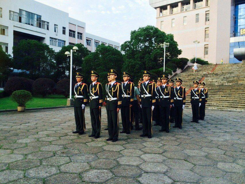 我校国旗班是校团委组织指导下的一支学生队伍,负责学校国旗的升降维护、重大活动的志愿礼宾任务及国旗国防教育等工作,由从我校各学院选拔出来的30名学生组成,接受着半军事化管理。