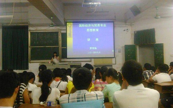 9月28日晚,经贸学院在A309教室举行了2014级国贸专业新生思想教育讲座,经贸学院副院长罗双临教授担任主讲人。
