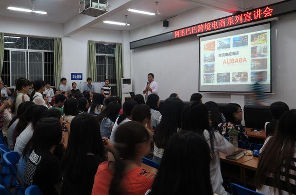 9月25日晚 “阿里巴巴跨进电商系列宣讲会”在我校实验楼一楼招聘会场举行,阿里巴巴湖南区域总经理张磊以“梦想还是要有的,万一实现了呢?”为题对商院学子展开宣讲与交流。