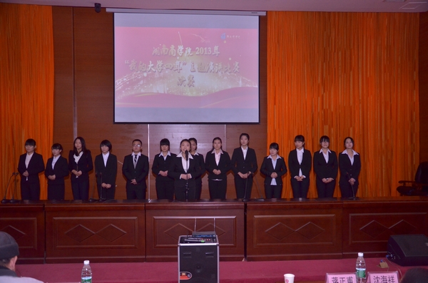 12月17日晚,2013&“我的大学四年&”主题演讲赛决赛在多功能报告厅顺利进行。我校关工委常务主任刘念生、副主任蒋正甫、学工处处长沈海祥、校团委书记黄艳娥、副书记曾晶及曹晨老师担任大赛评委。