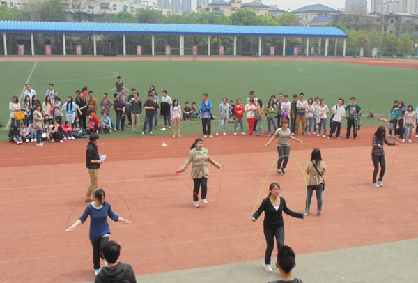 4月8日中午,由财政金融学院分团委学生会体育部主办的院跳绳选拔赛在田径场举行。