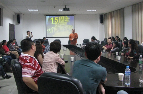 5月26日,我校国会9401班校友,在阔别15年后,相约回到了母校再聚首。上午,校友们参观了三汊矶校区、东马校区。下午,初夏的天空飘起了绵绵细雨,恰似朋友间绵绵的情谊,校友们在二办401室召开了座谈会。校友总会办公室对接待工作进行了周密部署,校友办老师、财政金融学院老师和校友工作协会志愿者参与了接待活动。
