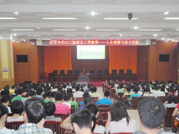 9月28日晚,经贸学院党总支书记彭炳忠教授在多功能报告厅为该院2011级新生作了题为&“人生理想与奋斗目标&”入学教育专题讲座。