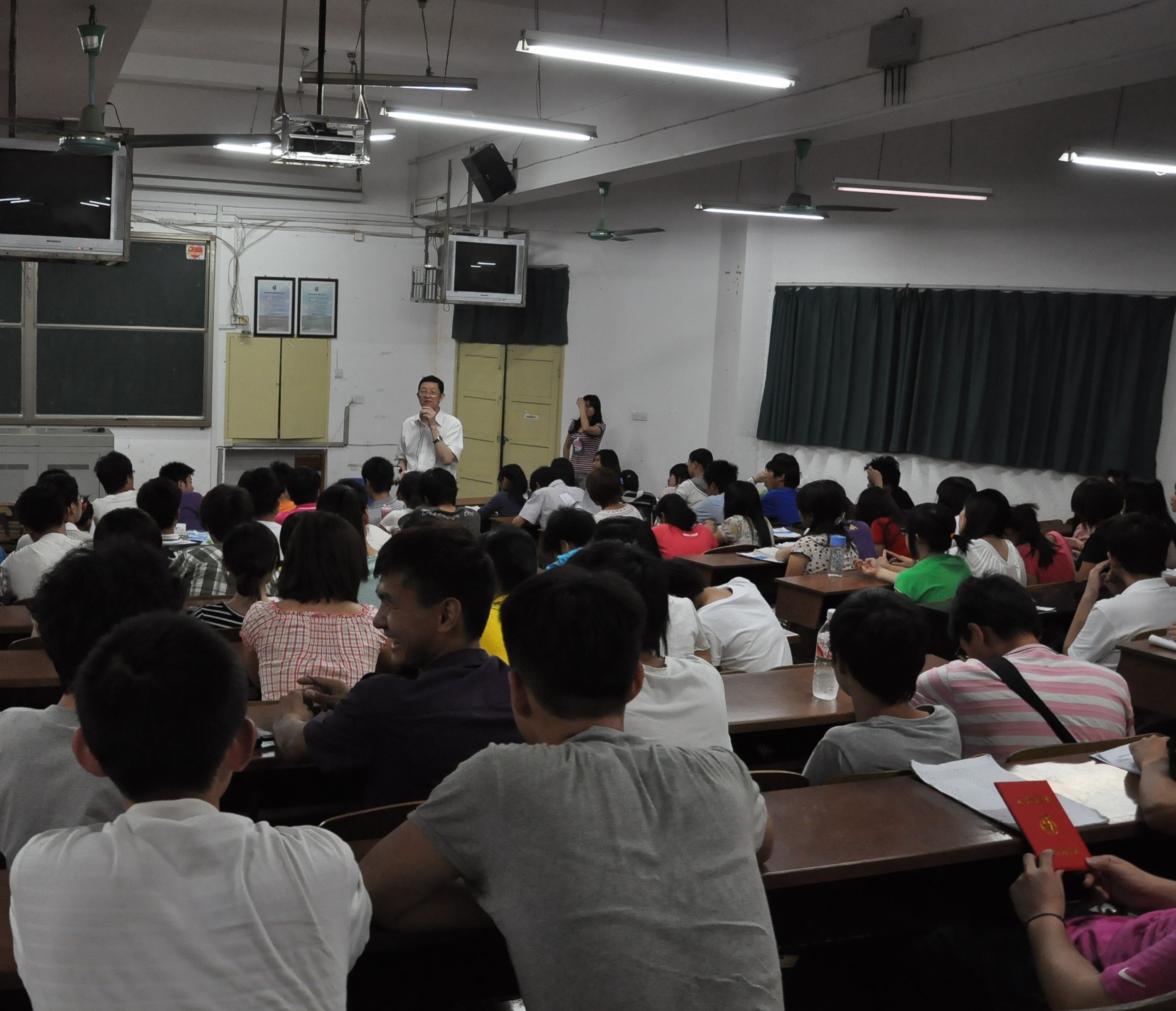 5月29日晚,法学院院长杨峥嵘在A309进行了与该院全体大一学生的讲谈交流会。 责编:陈璐明