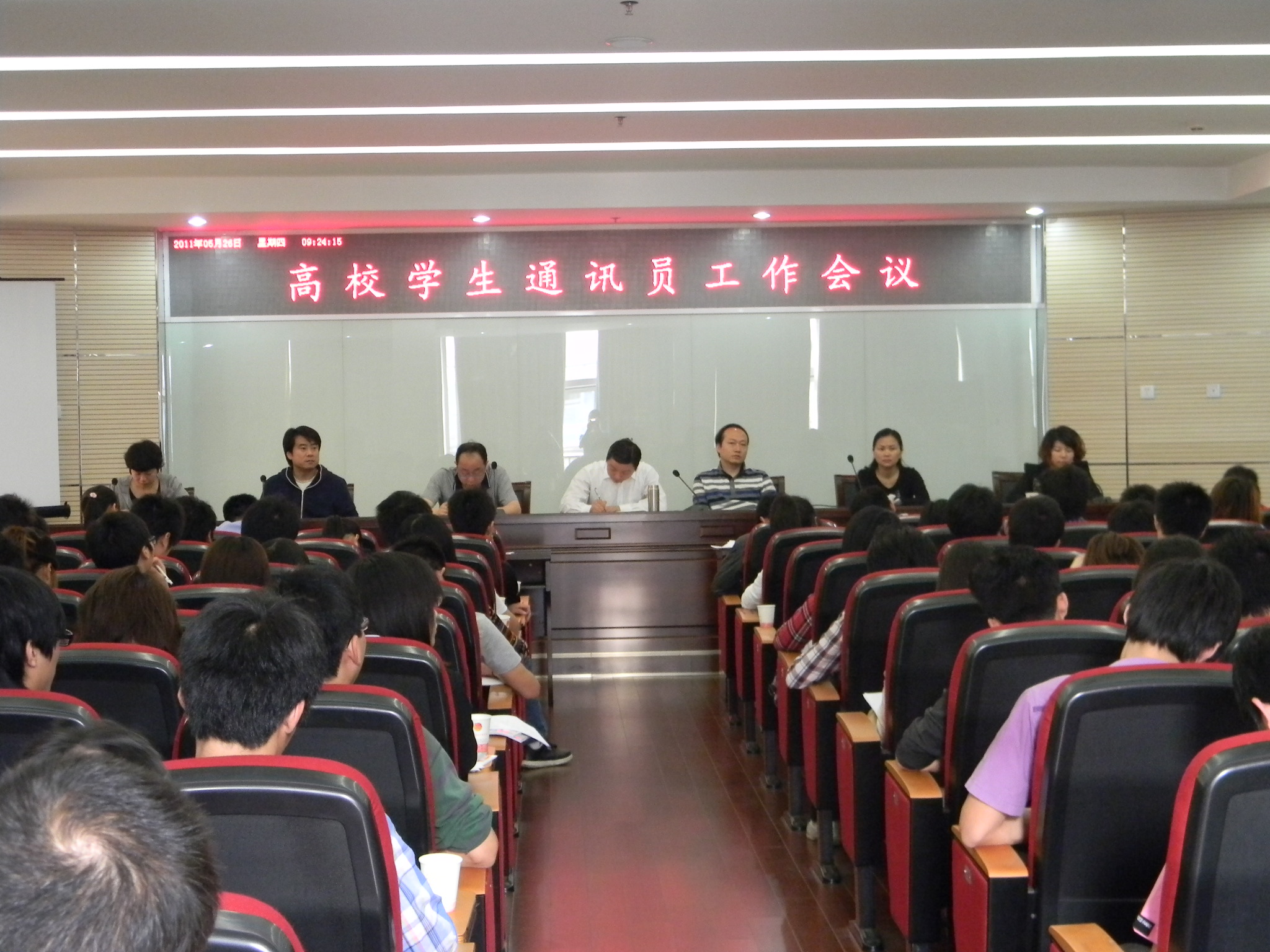 5月26日上午9点,由共青团湖南省委学校部、《年轻人》杂志社、湖南省人民广播电台联合举办的&“2011湖南省高校学生通讯员工作会议&”在共青团省委408会议厅顺利举行,来自全省各高校的106家媒体、文学社团代表参加了会议,共青团湖南省委常委、学校部部长廖良辉、副部长王虹彬,《年轻人》杂志社社长、总编辑彭力,湖南省人民广播电台文艺频道、旅游频道双频总监、书记刘朝青、副总监黄荣等嘉宾列席会议,会议由《年轻人》杂志社副社长甘建伟主持。