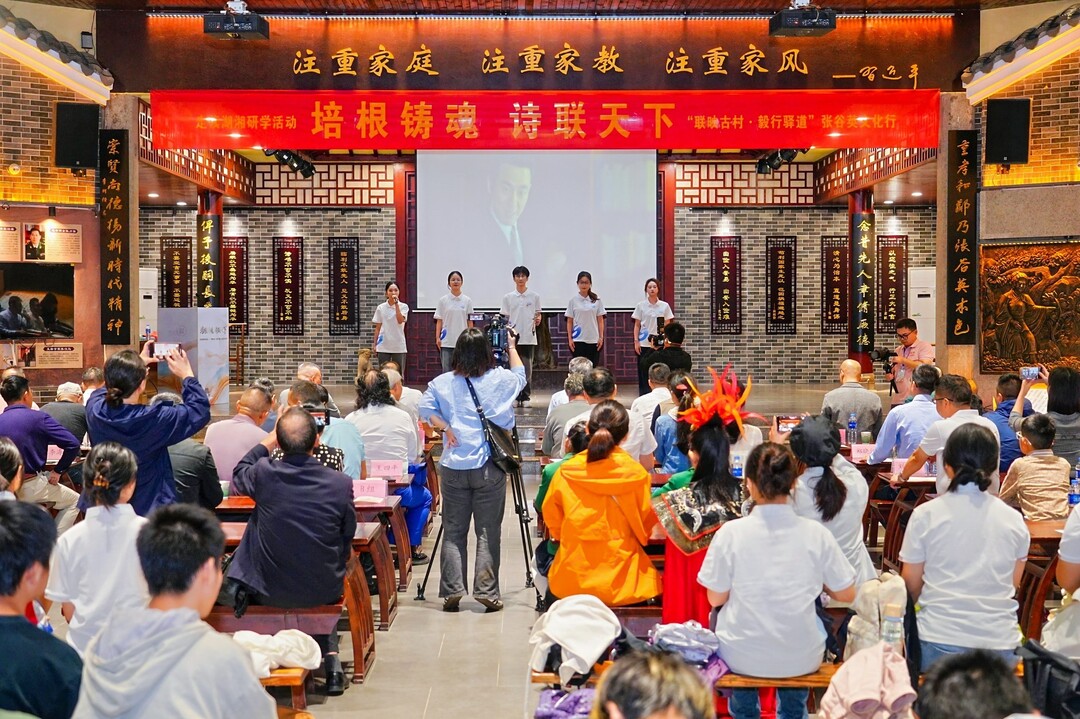随后,岳阳县人民政府、湖南省文史研究馆、湖南日报社相关领导先后致辞,省文史馆研究室主任、一级调研员胡智勇解读楹联创作背景,湖南日报社领导宣布活动启动。 在楹联研学环节,湖南工商大学师生与文史馆员、专家一道,分成两条线路,深入解读张谷英村楹联、驿道等文化内涵,在对比驿站、民居楹联中说联读史,于对联解读场景中以文读景,让古老的文化符号在专业解读中焕发生机。湖南工商大学外语团队进行中英文同步解读。
