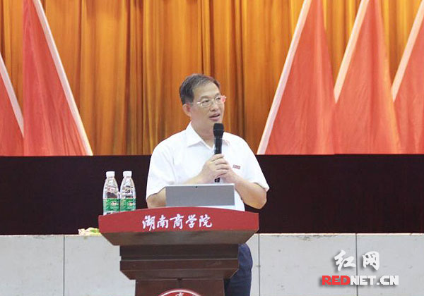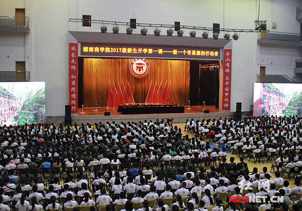 湖南商学院2017级新生开学第一课开讲现场。