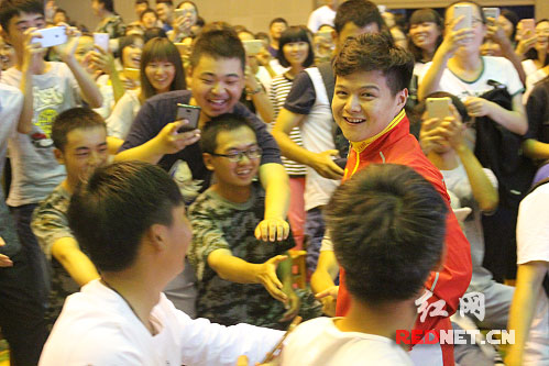 奥运冠军龙清泉与湖南商学院新生欢聚一堂。