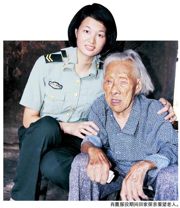 编者按: 这是一个孝心在道德长河里荡出美丽涟漪的故事—— 百善孝为先——孝道,作为中华民族优秀的传统美德,是中国人品德形成的基础。女孩肖霞,她有一颗孝顺之心,敬父母,爱外婆。 似乎还不够。孟子说:“老吾老以及人之老,幼吾幼以及人之幼。”这个“90后”大学生女兵还跟100岁远征军人遗孀有至亲之情,20年,她对她照顾有加,她们不是亲人却胜似亲人。 道德的力量在于传播,肖霞的善举先是感染了父母,再是感染了邻居,然后又感染了全村。全村都对这位孤寡老人十分孝顺。 20年,绝对不是肖霞对老人行善的时间长度;一村,肯定也不是人们对老者孝敬的空间距离。 没错,他们并没干什么惊天动地的事,但他们的举动却感动得让我们泪流满面。点点滴滴,如同细水长流;朴朴实实,似乎春雨无声。恰是这些点滴而朴实之情之爱之孝之敬,形成了力量向上的世道,构建着我们和谐的社会。 进入新的社会时代,“孝道”势必被赋予了更多新的文化和内涵,比如不仅仅让老人有吃有穿还有人陪着说话,比如常回家看看……看吧,这种细小之事,一定是你我都可以举手为之,哪怕对方不是我们的至亲。 《中国老龄产业发展报告(2014)》指出:2020年,我国老年人口数量将达到2.6亿,老龄化水平将达到17.17%。所以,大孝就是尊敬、关心身边的每一位人。 她曾是留守儿童,照顾一位抗日远征军人的遗孀,贯穿了她的童年和少年;初中、高中和大学,她把生活费节省下来,留给老人;成为一名大学生女兵后,她把服役津贴作为“抵押”,委托打工的父亲每个月给老人邮寄200元钱,服役三年,善举坚持了36个月。 如今,退役刚回到大学校园的她,又用仅有的津贴给老人办了一场温馨的百岁宴。 “照顾奶奶,没有很多理由的,因为她没有亲人,需要人走近她” “如果你再去看蒋奶奶,请一定告诉我,我要给她买一盒蛋糕带过去。”4月18日上午,湖南商学院北津学院大门口,这是肖霞见到今日女报/凤网记者时说的第一句话。这名身材高挑的女大学生,面容清秀,笔挺而立,和周围略显稚气的莘莘学子相比,言谈中多了成熟。 1991年出生的肖霞是湖南商学院北津学院工商管理系工商管理专业大二学生,她口里念叨的“蒋奶奶”,是一位百岁孤寡老人,叫蒋冬姣。她们没有任何血缘关系。但在长达近20年的时间里,肖霞用无私的爱,温暖了老人的晚年。 “其实照顾她,没有很多理由的,因为她没有亲人,需要人走近她。”肖霞说。 曾经,肖霞是一名典型的留守儿童。肖霞还不到一岁,便和两岁半的姐姐肖丽霞被父母送到外婆家。“在她和姐姐的成长中,跟我们在一起的时间,加起来不到两年。”父亲肖剑锋说,这是他和妻子每次想起来就愧疚的事。 肖霞和蒋冬姣老人的爱心交集,是从她留守外婆家时开始的。 外婆家在邵阳市新宁县回龙寺镇增桥村,蒋冬姣和肖霞外婆是邻居,其丈夫肖盛林年轻时是中国远征军的一名战士,曾前往缅甸和日军作战。肖霞留有深刻印象的是:“老爷爷常给我们讲他和战友在战场上杀敌人的故事。”但对于其小时候照顾老人的细节,肖霞说已经不记得了。不过,小孩子的善行,一直清晰地留在增桥村村民们的记忆中。 “肖霞大概四五岁的时候,便和姐姐一起,每天给蒋奶奶抬水。”58岁的肖香彩是增桥村党支部书记,那时候,她几乎每天看到这样的画面:“我们用的地下水是需要用手压才能够流出来的,姐妹俩力气小,整个身体悬空在压杆上,完全用体重才把水压上来。然后小半桶小半桶,踉踉跄跄地往蒋奶奶家里抬。” 肖盛林在世时,老两口还能够去后山上捡点柴禾。但在肖霞7岁那年,肖盛林去世,就留下蒋冬姣一个人。 “蒋奶奶每天坐在木门槛上,那时我们觉得她太可怜了。”肖霞说。也就是从那时候开始,肖霞和姐姐肖丽霞,承担了照顾蒋冬姣的任务。 肖霞上学要走一个多小时的山路。每天下午3点放学,其他的孩子一边走一边玩耍往往要到快天黑才回家,但肖霞姐妹俩,因为要照顾蒋冬姣,从不贪玩。上初中后,肖霞读寄宿,每个星期回外婆家一次。那时候,肖霞每个星期有了20元的零花钱。 “她舍不得用,每周放假回家,都会买些零食送给老人。”肖霞的舅妈吕小红说。 “其实我们也没有做什么,奶奶家没有柴的时候,就去帮她砍柴,没有水的时候就去挑水,需要打扫卫生的时候,就去扫扫地。”这点滴善举,贯穿着肖霞的童年和少年时期,也感染着每个村民。 “我从小在民风淳朴的村里长大,其实是村里人,教会了我做个好人” 新宁县回龙寺镇增桥村依山傍水,但由于山路弯弯,出行不便,又没有经济作物,村民普遍贫穷。但村民们的善举,并没有因为贫穷而吝啬。 为了让蒋冬姣的生活有保障,村里决定,每户人家每年出5公斤稻谷给老人。 “最开始有极少数人不守约的,但只要提到肖霞的名字,什么埋怨的话都没有了。”村支书肖香彩说,一个孩子能够做到,大人就更加应该做到。在肖霞的感染下,照顾蒋冬姣,成了增桥村村民不成文的约定。 村民唐叶彩干农活时常要经过蒋冬姣家门口,每次路过,总要大声喊上一句:“蒋奶奶,您还好不?”如果没有回应,她便进屋,直到看到老人无恙才离开。 村民冷国娇的菜园紧挨着蒋冬姣的家,每次去摘蔬菜,总要给老人送上一份。 2007年,肖霞以优异的成绩考上新宁县一中高中部。开学前一天,肖霞买了蒋冬姣喜欢吃的蛋糕去看望。临走,肖霞帮老人洗了澡,还把父