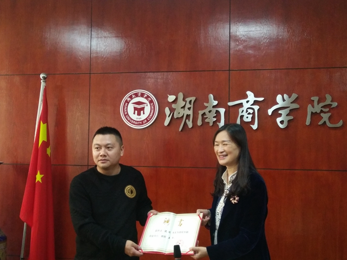 4月27日下午,座谈会在二办公楼702会议室召开。校长陈晓红出席座谈会并为两位校友颁发了创新创业导师聘书。计信学院负责人及两位校友的班主任、任课老师代表参加了座谈会。