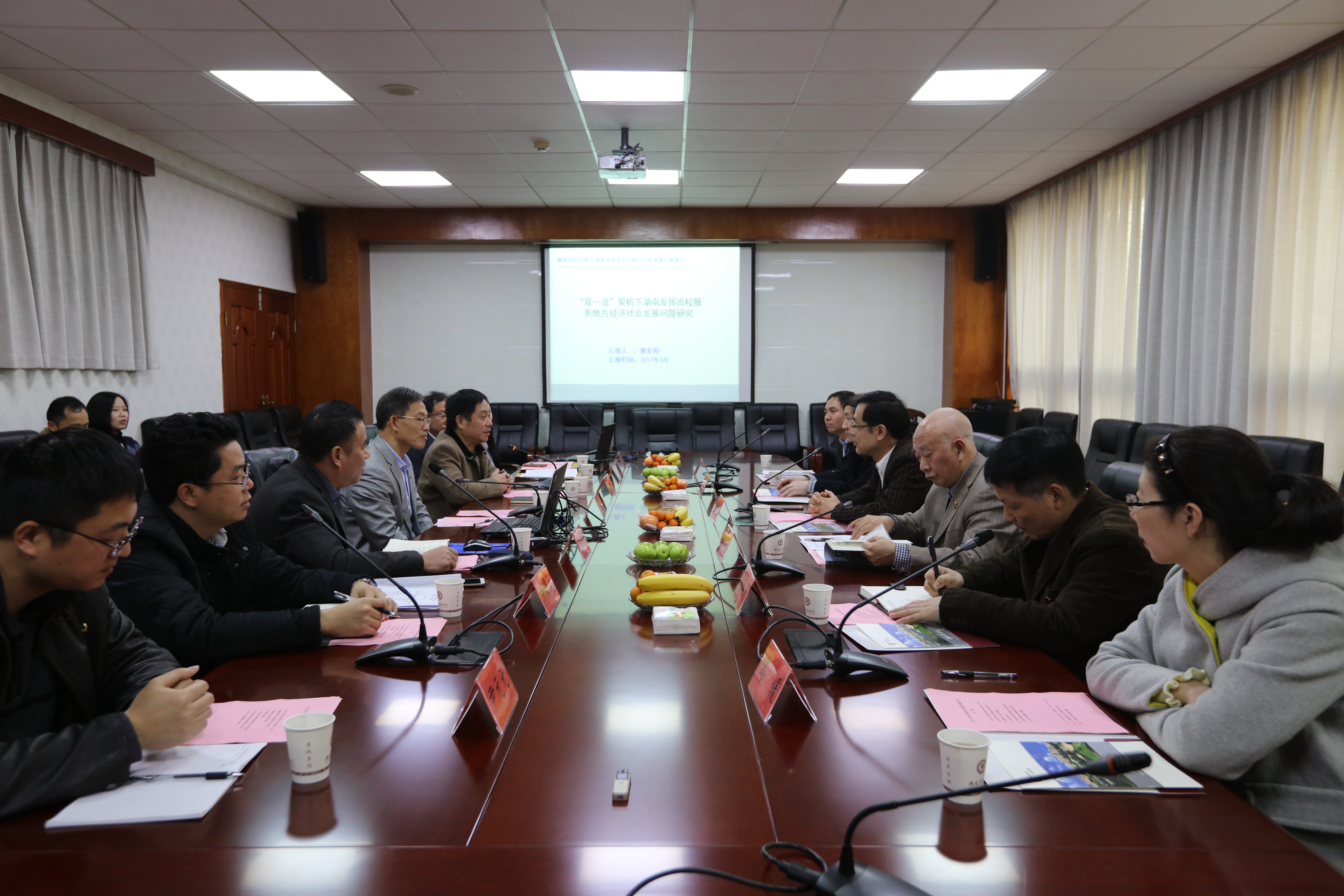 3月1日下午, 2017年省社科联重点课题开题报告会在二办公楼401会议室召开。省社科联巡视员刘晓敏、湖南商学院经贸学院院长柳思维教授、湖南大学金融与统计学院博士生导师彭建刚教授、湖南商学院马克思主义学院院长彭焕才教授、省社科联科研组织处黄渊基、乌媛等领导与专家出席会议,各课题组负责人与会。会议由科研处处长欧阳资生主持。 我校副校长王明高在报告会上致欢迎词,对各位专家的到来表示热烈欢迎,感谢他们对学校的支持与关心。参加本次开题论证的2017年省社科联重点课题分别是我校党委书记唐亚阳教授主持的《“双一流”契机下湖南发挥高校服务地方经济社会发展问题研究》、湖南财政经济学院彭程甸教授主持的《湖南发展PPP模式的问题与对策研究》、我校尹碧波博士主持的《湖南发展重点新兴产业培育新兴经济增长点的机制与政策研究》、我校尹元元博士主持的《湖南农业电商发展的问题与对策研究》 课题组负责人分别就课题的研究背景与意义、主要目标及任务、研究思路与方法、研究的重点难点及创新之处等内容进行汇报。 专家组对开题报告进行了综合评议,认为课题研究思路清晰,研究方案设计合理,研究内容完整充实,较好地体现了立项初衷和研究需要,对相关决策咨询具有重要意义;同时提出了“进一步聚焦问题、厘清核心研究命题与适合时代发展需求”等建议。 刘晓敏对此次课题开题表示肯定,并就社科项目研究工作指出,一是充分了解和运用省社科评审委的项目平台;二是做精学术类科研,突出应用类科研,紧贴时代需求;三是大力加强优长、特色学科及团队建设,做出好成果。 课题负责人对专家、领导的指导表示感谢,并表示课题组将会以此为契机,积极吸收专家意见,完善课题研究框架和行动路线,扎实做好课题研究。(文/图 杨佳)