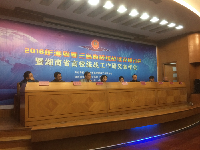 12月1日—2日,由湖南省高校统战工作研究会主办、吉首大学与我校承办的湘粤鄂三省高校统战理论研讨会在吉首大学举行。湖南省委统战部副部长胡东风,湖南省教育厅党组成员、工委委员陈飞跃,我校党委书记唐亚阳,吉首大学校长白晋湘,湖南省人民政府参事、我校一级荣誉教授柳思维,暨南大学党委副书记、纪委书记夏泉,长江大学党委常委、副校长兼统战部长李家宝等领导出席会议。湖南、湖北、广东三省高校统战工作相关人员参会。会议由湖南省高校统战工作研究会会长、我校党委副书记夏继春主持。 ![]() 会上,白晋湘代表吉首大学对湘粤鄂三省高校统战理论研讨会的召开表示热烈祝贺。他介绍了吉大的办学历史、师资力量、人才培养等方面的基本情况,并预祝大会取得圆满成功。 胡东风代表湖南省委统战部对三省高校统战理论研讨会的举行表示祝贺。她在讲话中从经济、地域、统战工作等方面向来自广东、湖北高校的与会学者介绍了湖南省的情况,并推介了湖南高校统战工作的几点主要做法:一是完善机制,落实主体责任;二是强化储备,夯实发展基础;三是精心培养,强化人才建设。她强调,面对新时期、新情况、新问题和新的任务,统战工作应该积极应对,不断研究和探讨新的工作方法和新的举措,为推进“四个全面”战略布局作出积极的贡献。 陈飞跃介绍了近年来湖南省高校统战工作整体情况,并归纳总结出统战工作四个新特点:高校统战工作格局有新提升、党外代表人士队伍建设有新力度、统战工作成员有新作为、民族宗教工作有新业绩。同时,他还就如何搞好高校统战工作提出了具体的意见和建议。 唐亚阳报告了湖南省高校统战工作研究会的基本情况,提出了新形势下加强统战理论研究,探索统战工作新方法的建设性意见。 广东外语外贸大学统战部部长方迎生,华中科技大学统战部部长杨筱,中南大学统战部部长龙大为分别代表各省高校发言,就统战工作的基本做法、认识体会、困难不足、经验建议向与会者进行了分享。我校柳思维教授详细介绍了自己多年来参政议政的经验和感受。 研讨会结束后,湖南省委统战部分组召开了《湖南省贯彻<关于加强新形势下高校统一战线工作的意见>的实施意见》座谈会。(李中平)