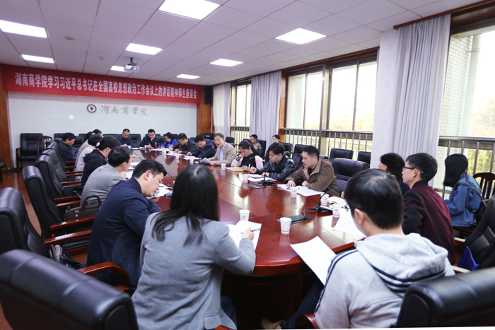 12月9日下午,学校在二办401会议室召开学习习近平总书记在全国高校思想政治工作会议上的重要讲话座谈会。校党委书记唐亚阳出席会议并与教师代表、学生代表共同讨论学习全国高校思想政治工作会议精神。组织部、宣传部、学工部、教务处、校团委、校工会、马克思主义学院的负责人参加了会议。 与会师生结合自身的工作和学习表示,一定要在教育教学全过程中,学习贯彻习近平总书记在思想政治工作会议上的重要讲话精神。通过学习习总书记的重要讲话,进一步认清了我们办什么样的大学、怎样办好大学和培养什么样的人、如何培养人、为谁培养人的问题,明确了加强和改进高校思想政治工作的聚焦点、着力点,增强了做好工作的信心、决心。