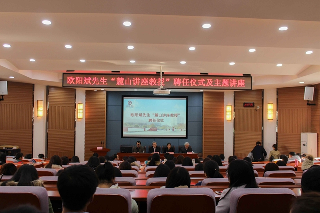 12月6日下午,我校在乐知楼F201报告厅举行“麓山讲座教授”聘任仪式,湖南省政协副主席、省文联主席欧阳斌受聘为我校“麓山讲座教授”。校长陈晓红、副校长黎定军出席仪式。仪式由文学与新闻传播学院院长郑佳明教授主持。