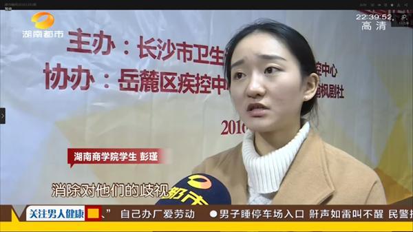 长沙市疾控中心、长沙市预防医学会表彰了湖南大学、中南大学、湖南师范大学、湖南农业大学、湖南商学院5所高校的25名优秀防艾志愿者,我校彭瑾同学作为优秀志愿者代表发言。