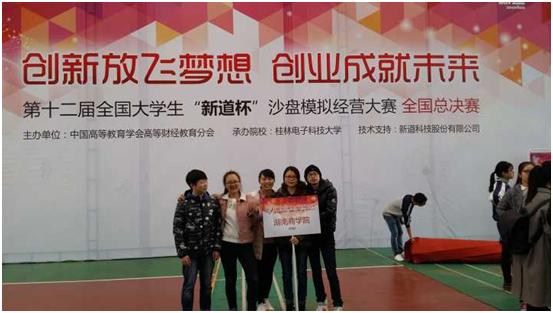 11月28日,第十二届全国大学生“新道杯”沙盘模拟经营大赛全国总决赛在广西桂林落下帷幕。经过两天激烈的角逐,由曹宣怡、肖梦婷、宋维、肖锦莲、肖雁芳五名同学组成的湖南商学院代表队荣获全国一等奖。