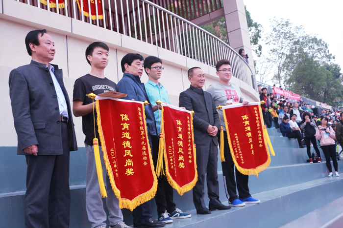 11月4日—6日,我校举行第十九届田径运动会。全体在家校领导出席开幕式,开幕式由副校长刘国权主持。 ![]() ![]() ![]() ![]() ![]() 开幕式上,以校领导为首的教工代表队首先入场,紧随其后的是来自全国各地的校友方阵,14个二级学院方阵依次入场,分别用各具特色的方阵表演展现院系特色,看台上的啦啦队员也奋力挥舞着手中的旗帜,现场气氛热烈。 ![]() ![]() ![]() ![]() ![]() 在全体起立奏唱国歌和校歌后,校长陈晓红致开幕词。陈校长对辛勤工作的全体师生表示了衷心的感谢,向运动会圆满开幕表示热烈的祝贺。同时,也向从各地赶来的湖商校友们表达了诚挚的感谢和祝福。她表示,非常高兴能在学校最好的发展时期遇见最好的老师和同学们,并希望全体师生能继续发扬顽强拼搏,众志成城的精神,赛出风格、赛出水平,做到更高、更远、更快、更强。最后,她预祝第十九届运动会取得圆满成功。 运动员代表、裁判员代表分别宣誓。党委书记唐亚阳宣布运动会开幕。教职工趣味运动项目正式拉开了本届运动会比赛的帷幕。铁甲战车、龙行天下、趣味闯关,教职工团结协作,奋力比拼,现场气氛欢快。 ![]() ![]() ![]() 本届运动会共839名运动员参赛,在跳高、跳远、后抛实心球、接力赛等多个项目上展开激烈角逐。 ![]() ![]() ![]() ![]() ![]() ![]() 11月6日下午,校运会完成所有比赛项目后圆满结束,闭幕式在田径场内隆重举行。校领导唐亚阳、彭进清、曾伏秋、刘国权、聂国卿,校党委委员、党政办主任杨良奇,优秀校友胡子敬、周兆达、卢寒冰和各二级学院负责人及校友工作办公室负责人出席闭幕式。 闭幕式上,总裁判长宣布本届运动会比赛团体总分、名次和道德风尚奖名单。其中,北津学院、计算机信息工程学院、会计学院分别夺得团体第一、二、三名;法学与公共管理学院、设计艺术学院、数学与统计学院获得道德文明风尚奖。运动会上,两个项目刷新校运会记录。 校领导和优秀校友分别为获奖集体颁奖。 ![]() 副校长刘国权致闭幕词。他代表大会组委会向全体工作人员的辛勤付出及全体师生的大力支持表示衷心感谢,向奋勇拼搏的全体运动员表示崇高的敬意。他指出,本届运动会充分展示了广大师生的精神风貌,体现了我校体育工作的较高水平,并希望全校师生能不断提高身体素质,把体育精神融入到以后的学习与工作中去,为“三升”强体质,为梦想著华章。 湖南商学院官微对运动会开幕式进行了网络现场直播和回放,在线观看人数过万。(文/罗甜 陈江平 摄影/党委宣传部 学生通讯社摄影组)