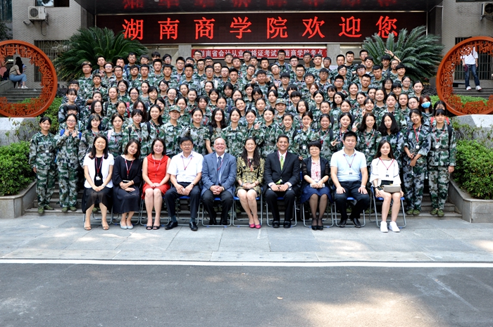 我校中外合作办学金融学本科项目的合作伙伴美国弗罗斯特堡州立大学John Bowman副校长受该校校长委托率商学院Sudhir Singh院长等一行于9月22日至24日来访我校。我校校长陈晓红与John Bowman副校长愉快地回忆起两年来的友好合作历程,并就中美合作培养国际型金融人才进行了深入交流。两校领导高度肯定项目运行的有效性,表示将积极支持该项目的发展,并一同接见了刚刚结束军训的中外合作办学金融学本科项目2016级全体新同学。