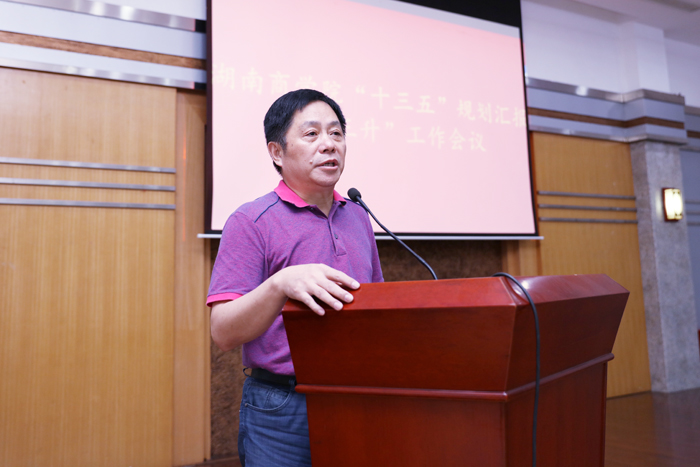 7月12日,学校在岭南校区综合楼多功能会议厅召开“十三五”教育事业发展规划汇报暨“三升”工作会议。全体校领导、全体副处级以上干部、教授和博士代表、民主党派代表、离退休老同志代表、发展规划处和“三升”办全体成员参加会议。会议由副校长黎定军主持。