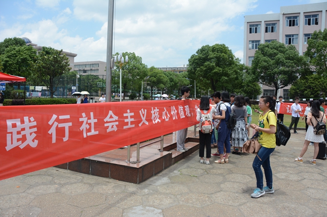为培育和践行社会主义核心价值观,提高学生文明素养,5月31号上午,“抵制校园不文明行为签名活动”在英才广场举行。