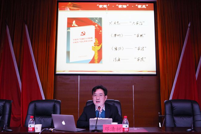 省委讲师团副主任邓清柯来校宣讲《准则》和《条例》