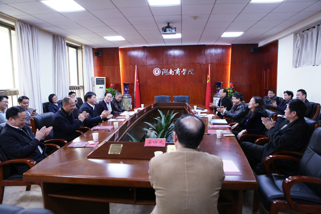 王汉青书记、陈晓红校长对岳麓区党政领导一行的来访表示热烈欢迎,同时感谢岳麓区对高等教育事业以及湖南商学院的理解和支持。 王汉青书记指出,学校近两年来提出了“三升”的发展目标和“三旺”的发展愿景,学科内涵日益充实、办学实力不断提升,正朝着建设一所高水平的财经大学而加速前进。作为地处岳麓区的高校,得一方水土滋养,也希望能为地方经济社会的发展贡献力量。 陈晓红校长向岳麓区党政领导介绍了学校的办学历史和基本情况、学科优势、人才培养质量等,她指出,校地双方在区域经济、社会管理、文化建设、创新创业等领域有较大的合作空间,并表示学校将一如既往地关注岳麓区的发展,为区域建设提供智力保障和人才支撑。 座谈会上,副校长彭进清、王明高分别就学校公寓建设项目、校园及周边综合治理、校地人才及智力资源共享等情况与来访的区领导进行了探讨交流。近年来,岳麓区与我校互相支持、互相配合,促进了共同发展。岳麓区区域经济快速增长、城乡面貌焕然一新、产业发展形势喜人、两型建设成效显著、民生事业大幅提升,经济社会发展态势良好;我校周边道路交通进一步改善、环境日益优美、社会治安稳定,高地建设稳步推进。 针对学校提出的加大对大学生创业的宣传、辅导和扶持力度,加强校地工作对接等问题,岳麓区区长刘汇表示,要建立区校合作机制,由区委领导牵头各相关部门,与学校积极对接,加大协调力度,积极搭建区、校合作交流平台,主动对接高校专家教授、青年学子创新创业,形成大众创新、万众创业的良好氛围。 周志凯书记对湖南商学院多年来对岳麓区社会经济发展的支持表示感谢。他指出,将高校的科技、人才优势转化为地方经济发展的动力,是岳麓区新一届领导班子上任后的重点工作之一。为此,区委区政府在“十三五”期间将围绕“两型高地、科教强区、增长新极、河西靓城”的定位要求来谋划发展,在新常态环境下加快打造长沙的“西引擎”、“西高地”。岳麓区要利用高校科教优势,推动地方产业转型升级,让创新创业真正成为引领新一轮发展的一面旗帜。今后,岳麓区将进一步为高校做好各项服务工作,主动了解高校需求,并希望在高端商贸服务业、生产性服务业、现代金融业、文化旅游业等新型产业的发展方面开创区、校深度融合、共建共赢的良好局面。