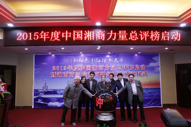 湖南省委原副书记、省人大常委会原主任、省政协原主席刘夫生,湖南省人大常委原副主席蔡力峰,湖南省政协副主席张大方,湖南日报党组成员、常务副总编辑马宁,国家统计局政研所原副所长、著名经济学家、中国社会经济调查研究中心主任赵仲海,我校校长陈晓红,湖南省委宣传部原副部长、省社科联原主席、湖南商学院文学与新闻传播学院院长、湘商研究中心首席专家郑佳明共同启动“2015中国湘商力量总评榜”活动。 从本届活动开始,我校负责所有入选对象的个人征信、企业数据统计,同时,组织专家进行线上线下全面调查,使统计数据更加科学、严谨、详实、权威。