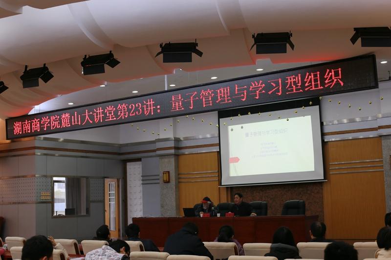 12月22日下午,台湾中央大学宋铠教授来校开讲麓山大讲堂第二十三讲,讲座主题为“量子管理与学习型组织”。副校长王明高教授主持讲座。