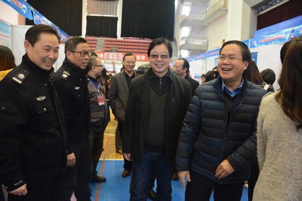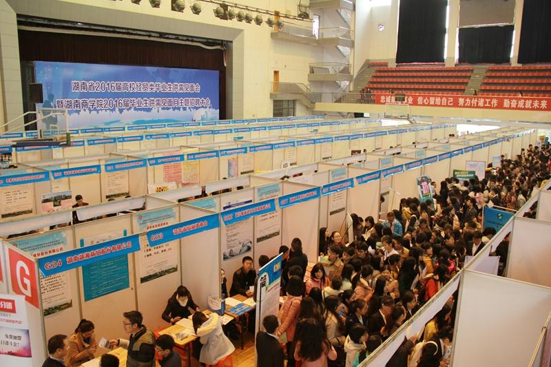 11月27日,湖南省2016届高校经贸类专业毕业生供需见面会在我校体育馆隆重举行。校党委书记王汉青、副校长曾伏秋出席招聘会并看望来校招聘企业代表,对他们来校选拔人才表示欢迎和感谢。省教育厅学生处副处长谢桂平、省就业指导中心副主任夏学军莅临现场指导。