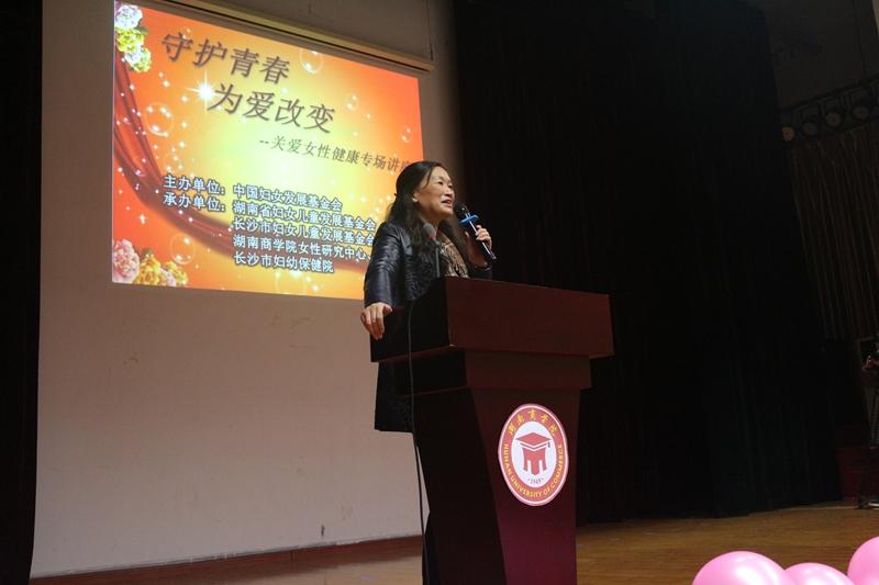 11月24日下午,“守护青春,为爱改变”长沙市女性健康校园公益讲座在我校大礼堂举行。我校校长陈晓红、湖南省妇联副主席卢妹香、湖南省妇女儿童发展基金会秘书长周萍等出席讲座。长沙市妇幼保健院妇女健康中心主任周燕飞担任主讲人。我校600余名师生聆听了讲座。