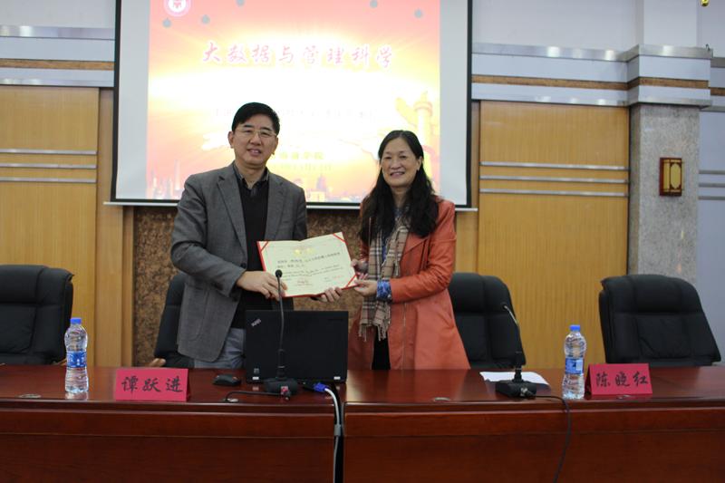 11月12日下午,麓山大讲堂第十五期在岭南校区设计艺术学院三楼多功能报告厅开讲。本期大讲堂由原国防科技大学信息系统与管理学院院长、文职少将谭跃进教授主讲,校长陈晓红教授主持。 讲座开始前,陈晓红校长为谭跃进教授颁发聘书,聘请他为我校麓山特聘兼职教授。谭跃进教授是中国系统工程学会副理事长,中国高等教育学会高等商科(管理)教育分会理事长,教育部公共管理硕士教学指导委员会委员,总装备部某专业组副组长,全军装备采购专家咨询委员会委员,全军装备科学管理专家组专家,全军军事学科评议组成员,湖南省系统工程学会名誉理事长,湖南省行政管理学会副会长,湖南省咨询协会副会长,湖南省电子学会副理事长等。他长期从事复杂系统理论、系统规划与政策分析、航天资源任务规划、武器装备体系论证与效能评估等领域的教学科研工作。主持国家自然科学研究基金、863、武器装备预先研究、重点型号工程等项目40多项,获部委级科技进步一等奖2项、二等奖4项、三等奖6项。 谭跃进教授从对大数据的理解、基于大数据的分析与管理决策、从大数据看复杂系统研究、移动大数据与应急管理四个方面对大数据进行了系统的介绍,讲述了大数据在管理学中的方法,并用六个案例分析了大数据在管理学中的应用。 在讲座中,谭跃进教授运用山猫与兔子这一经典事例简明扼要的阐述了大数据分析与模型分析方法的区别,即关联性分析与因果分析的区别。从此案例中他还总结出大数据分析相比于传统数据库对数据的处理更适用于复杂系统研究这一结论。 谭跃进教授指出,在二十一世纪,大数据与物联网是紧密结合的,而管理学科又是一门新兴交叉学科,因此大数据与管理科学有着千丝万缕的联系。谭跃进教授强调,大数据是从局部到整体,从单纯到繁杂,从因果到关联,从简单到深入的研究问题,基于大数据的分析与决策不是靠似是而非的“理论”,而是迅速、直观、理性地对复杂系统或问题进行分析、预测、评估、决策和实施管理。 讲座的最后,谭跃进教授对移动大数据如何应用于应急管理这个复杂系统进行了概述并强调了大数据分析的重要性。(文/方婧雯 图/符林翼) 责编:陈璐明