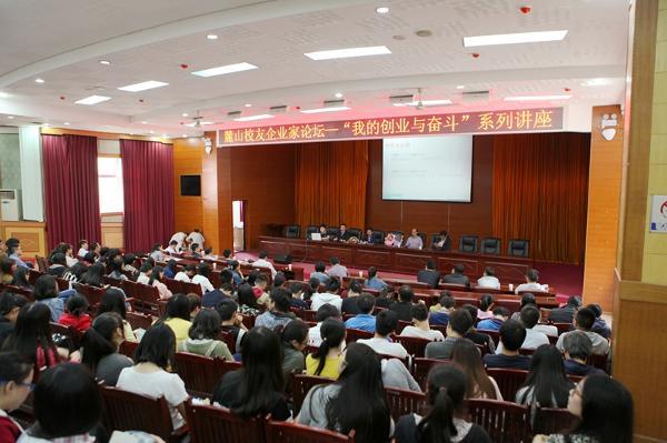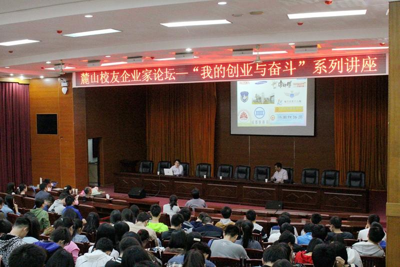 10月28日下午,邓跃进、范建文、雷玉放三位校友企业家在图书馆多功能报告厅开讲“我的创业与奋斗”。