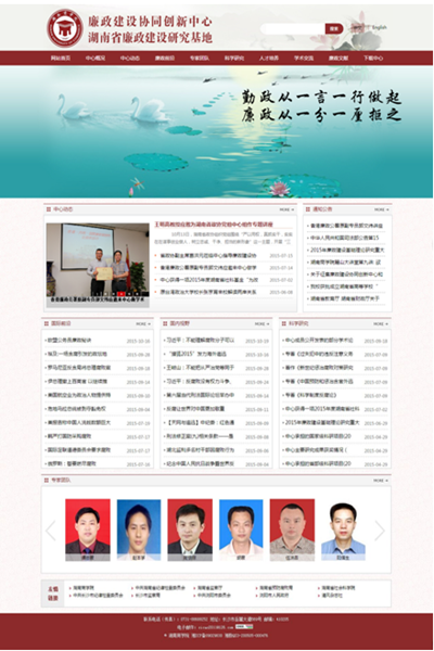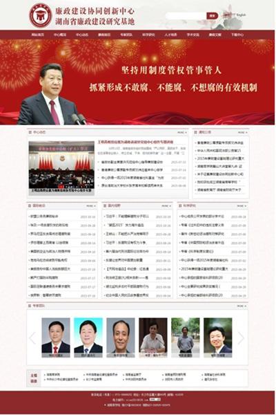 该网站的建设,是为贯彻落实湖南省教育厅、湖南省财政厅关于加强湖南省高等学校“2011协同创新中心”建设工作的意见,构建湖南省廉政建设协同创新网络平台,展现廉政建设领域的理论与实践创新成果。网站的建设经过了前期论证、方案设计、页面制作、资源整合、后期审校五个阶段的缜密工作。网站设有“中心概况、中心动态、廉政前沿、专家团队、科学研究、人才培养、学术交流、廉政文献、下载中心”等9个版块和24个栏目,全面展现中心协同创新工作的最新动态和国内外廉政理论与实践的最新成果,体现了较强的专业性、实用性、权威性和开放性。 作为湖南省廉政建设协同创新领域的权威信息发布平台和国内外廉政建设工作者交流互动平台,网站可以更好地展示中心形象,发挥中心在廉政建设研究和协同创新领域的权威性和公共影响。网站不仅能拓展广大廉政建设研究者和工作者获取廉政建设知识的途径,也为中心服务国家和地方廉政建设事业提供了一个重要通道。 湖南省廉政建设协同创新中心是经湖南省教育厅、湖南省财政厅严格评审并于2014年9月下文批准设立的湖南省高等学校“2011协同创新中心”,是按照“国家急需、世界一流”的标准设置和建设,为满足党和国家积极推进廉政建设的重大战略急需的反腐倡廉建设理论研究中心、人才培训基地和决策智库。中心以湖南商学院为牵头单位,中共湖南省纪委、湖南省监察厅、湖南省预防腐败局、湖南省社科院、中共长沙市纪委、长沙市监察局、中共浏阳市委、浏阳市政府、《清风》杂志社为协同单位。(科研处) 廉政建设协同创新中心网站首页