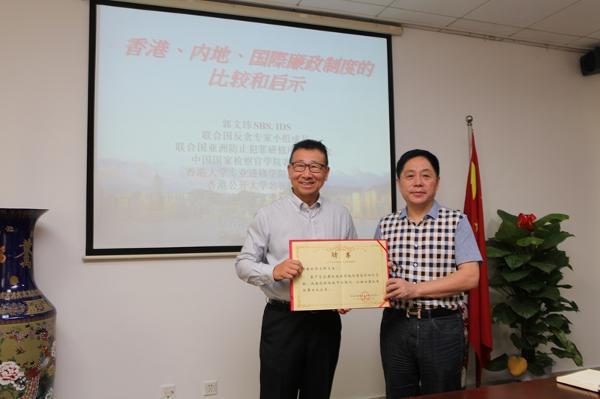 湖南省廉政建设研究基地主任陈丽影教授在致辞中代表学校对郭先生莅临我校指导廉政建设协调创新中心的工作表示欢迎和感谢。她简要介绍了郭文纬先生的主要经历和廉政建设协同创新中心的基本情况,以及牵头高校和参与单位在廉政建设方面开展的主要工作和取得的成绩。 会上,中心首席专家王明高教授为郭文纬颁发聘书,正式聘请他为廉政建设协同创新中心顾问。郭文纬表示,将为中心的廉政建设事业发展提供有力支持。郭文纬先生是世界著名的反腐专家,香港特区“银紫荆星章”和“廉政公署卓越奖章”获得者;香港大学专业进修学院荣誉院士、客座教授兼反贪课程主任;香港公开大学荣誉院士;联合国反贪专家小组成员;联合国亚洲防止犯罪研修所客座专家;国际反贪组织协会亚太区联络专家;菲律宾、蒙古反贪顾问;国际反贪学院客席教授;英国特许管理学会香港分会前主席。 郭文纬在讲座中围绕特区政府架构、联署所取得的成就、廉政公署的组织、廉政公署调查贪污投诉程序、公营和私营机构的贪污治理、国际反贪经验、十八大后的反腐建议等深入比较了香港、内地和国际廉政制度,并得出启示。讲座内容翔实,观点新颖独到,信息量丰富,思想深刻,视野开阔。 最后,廉政建设协同创新中心首席专家王明高教授作总结发言。他说,郭文纬先生是真正做到了“立德、立功、立言”的反贪腐领域的世界级专家。廉政中心的成立得到了国际、国内众多专家学者和各级领导的关心、支持,目前正朝着国内一流、世界领先的目标努力,也希望郭先生充分发挥顾问的作用,在反贪理念、中心建设等方面传经送宝,推动中心与外界在项目研究、培养研究生和成果交流等领域开展广泛合作,努力开创廉政学科的新天地。(文/胡慧美 陈鑫铭 图/胡慧美)