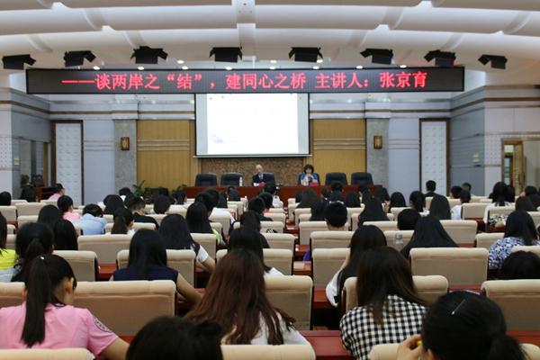 “欲穷千里目,更上一层楼。”为推动两岸文化发展,促进湘台文化交流,6月3日晚,美国哥伦比亚大学政治学博士,原台湾政治大学校长、台湾政治大学国际关系研究中心主任,现台湾中华湖湘文化发展协会理事长、台湾中华两岸经贸投资文化教育协会理事长张京育先生作客湖南商学院“麓山大讲堂”,在岭南报告厅内畅谈两岸解“结”建“桥”之道。 讲座由廉政建设协同创新中心、湖南省廉政建设研究基地承办,邀请了《清风》杂志社总编汪太理、办公室主任何思贤等嘉宾到场。讲座由湖南商学院副校长杨虹主持。 ![]() 张京育先按时间顺序纵向解答了“两岸关系之态势”:曲折多变、多元复杂、同根同源。两岸之“结”存在历史、现实、政学认知和纯误解等多方面的因素,张京育对此提出了3“I”解决法:一是理念(Ideas),两岸需要树立正确理念,渐进式改善两岸关系,并与人为善,追求两岸最大共识。多做以人民的价值和福祉为核心考量的事,尽量避免加深双方的主要疑惧。设法开展正式有效的对话,务实面对两岸关系的节点;二是利益(Interest),两岸可以通过农业、医疗、文化、教育、环保等各面相上的合作互补,丰富两岸人民生活,将有限资源运用到建设性领域。加强通文化、通资讯、通思维的文化三通工作,价值观念和文化情感的互通是重中之重;三是制度(Institution),两岸关系的长久发展离不开制度,法规机构可规划未来、建新制度,制度也意味着一种可预测的行为模式。具体可制定经贸合作框架协议,通过加强物质经济交流以达互利双赢。 张京育先生在随后的讲话中又分别从信仰系统一体化的文化角度和血缘、物缘、文缘的哲学角度解读了两岸关系问题。他把两岸之“LOVE”拆解为八个新的单词:倾听(Listen):多倾听对方的声音;观察(Look):感觉对方的存在;前瞻(Outlook):为两岸关系的长远考虑;忽视(Overlook):适当忽略,不要吹毛求疵;发声(Voice):大声说爱;德行(Virtue):本分守德,赢得爱与尊重;鼓励(Encourage):鼓励重于责备;永恒(Endless):恒久的两岸关系的建立长期的努力。 讲座最后,张京育与现场学生进行了互动,为年轻人点明了对两岸关系的正确认知态度,并表达了对两岸关系永续发展的信心。(文/章沁 图/张鹏)