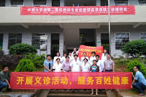 应学校驻村帮扶工作队邀请,5月30日由中南大学湘雅二医院5名教授、6名副教授、2名主治医师和1名研究生组成的高水平医疗队,赴我校对口帮扶贫困村——新邵县潭溪镇兴家村,开展送医送药义诊活动。本次专家义诊队成员涵盖内科、传染科、老年病科、外科、骨科、妇产科、眼科、口腔科、影像介入科与超声科,同时携带了价值过百万的移动彩色超声仪,还配带了心电图机、血糖仪、听诊器、血压计、体温表、视力表、门诊病历本、处方纸、常见慢性病防治宣传册。