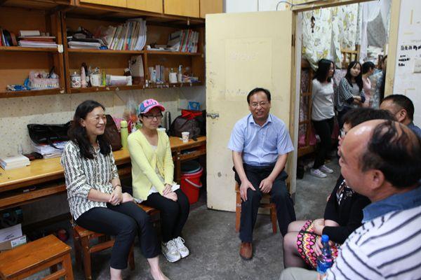 5月8日中午,校长陈晓红、副校长彭进清,以及学生处、财政金融学院负责人来到翠雅公寓6栋115寝室,亲切探望陈一芬同学。 “我在学校官微上看到你勇战疾病的事迹,很受感动。今天特意来看看你,你的气色很好,说明你恢复得好,心态乐观”,陈校长一进寝室,就细心关注了一芬的精神状态,并鼓励她,“一是要顽强自信,抛弃顾虑,安心治疗;二是要乐观开朗,笑容就是最好的良药,学校全体师生,是你坚强的后盾。”陈校长给一芬送去了慰问金,嘱咐她有困难一定要向学院反映,树立信心战胜病魔,未来的生活道路充满阳光。 陈校长还询问了同学们的学习生活情况,赞扬了室友间友好互助的良好风气。“同在一个屋檐下,大家就是一家人,要相互支持,相互帮助,大学时代的友谊,是人一生最美好的回忆。”她鼓励大家珍惜时光,专心学习,不要辜负学校和家人的期望。亲切的话语和爽朗的笑声,吸引了周边寝室的同学,寝室内外围满了人,大家认真聆听校长的教导,脸上洋溢着笑容。 更多生动信息,请关注湖南商学院微信公众平台——