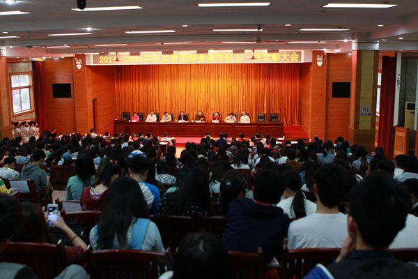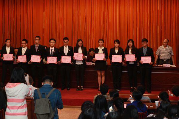 5月4日下午,学校在图书馆多功能报告厅隆重召开了“五·四”表彰大会,学校党委书记王汉青、副校长彭进清出席会议,会议由副校长彭进清主持。 ![]() ![]() 校团委副书记曾晶在会上宣读《湖南商学院2014-2015学年五·四表彰通报》,对2个五·四红旗分团委、2个优秀学生分会、4个青年志愿者服务优秀组织单位、10个优秀学生社团及十佳青年、十佳团支书进行了表彰。 会上,五·四红旗分团委获奖单位代表、计算机与信息工程学院分团委副书记胡潇峰,“十佳青年”获奖者代表、经济与贸易学院学生杨志伟分别作为获奖代表发言,分享了自己的成长经历,畅谈了自己的青春梦想。 学校党委书记王汉青在会上发表讲话,对受到表彰的先进集体和优秀个人表示祝贺,希望全校广大青年学子坚定信仰,牢固树立远大理想,把报效祖国作为自己的最大追求,把奉献社会作为自身价值的最大体现。 王汉青书记希望同学们发扬五四精神,开创更有意义的人生:一是要注重修身,造就真金品质;二是要勤于学习,练就过硬本领;三是要勇于创新,开辟崭新天地;四是要争当表率,成就伟大事业。 党政办、组织部、宣传部、教务处、学工处负责人出席了表彰大会。 (文/巢进文 图/张鹏)