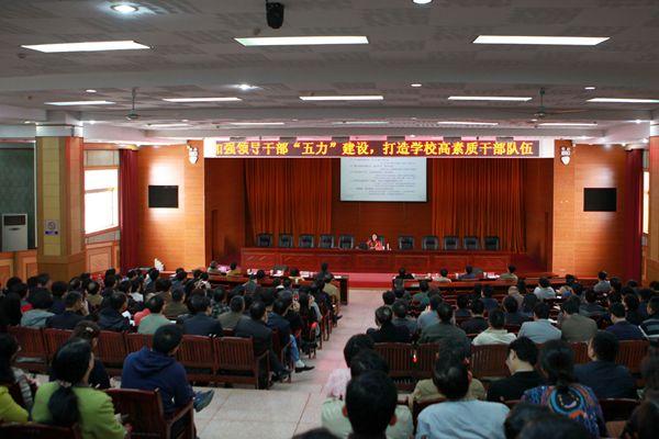 4月14日下午,学校在图书馆多功能报告厅召开学习会议,校长陈晓红在会上为全校副科级以上干部、全校党支部书记及教师代表作了题为“领导艺术的五力观”的专题报告,全体在家校领导出席会议,会议由校党委副书记夏继春主持。 ![]() ![]() 校长陈晓红在报告中指出,近年来,管理工作对各级干部的领导艺术提出了更高要求,学校要实现“三升三旺”战略目标,迫切需要各级干部实现从“管理”到“领导”的提升,通过学习领导艺术,不断提升管理水平。 陈晓红校长首先分析了中国领导者的现状,界定了领导艺术的内涵,然后从培养卓越的领导力、制度力、执行力、文化力和创新力等方面对各级干部提升领导艺术进行了深入细致的解读。陈晓红校长认为,领导艺术既是掌控的艺术,也是协调和制衡的艺术,人们服不服领导既出于传统的观念,更取决于领导者的品格、才能、胆识、感情等因素。 陈晓红校长指出,要培养卓越的领导力,就要努力提升自己的决策艺术、用人艺术和协调艺术;要培养卓越的制度力,就要完善制度体系设计,维护制度的严肃性、连续性和权威性,切实提升法治素养,全面推进依法治国;要培养卓越的执行力,就要确保工作执行中的速度、尺度和力度,坚持用正确的人,做正确的事,把事情做正确;要培养卓越的文化力,就要让本单位的核心价值观符合行业要求、时代要求、战略要求,使文化理念得到有效贯彻与强力执行,并持续注入新的活力;要培养卓越的创新力,就要树立培养创新型人才的核心理念,搭建创新平台,完善创新机制,形成自主创新能力。 陈晓红校长强调,作为高校领导干部,要知道“我是谁”、“为了谁”、“干什么”,要勇于承担自己的责任和义务,树立大局观念,用平等的态度对待不同的意见;不仅要做到对上负责,还要做到对下负责;要明确工作内容,对政策和外部环境有深刻的了解。在执行政策的过程中,要做到“讲规则、讲程序、讲道理、讲情义、讲奉献”,认真做事,注重细节,协调团结,奖惩分明。(巢进文) 责编:巢进文