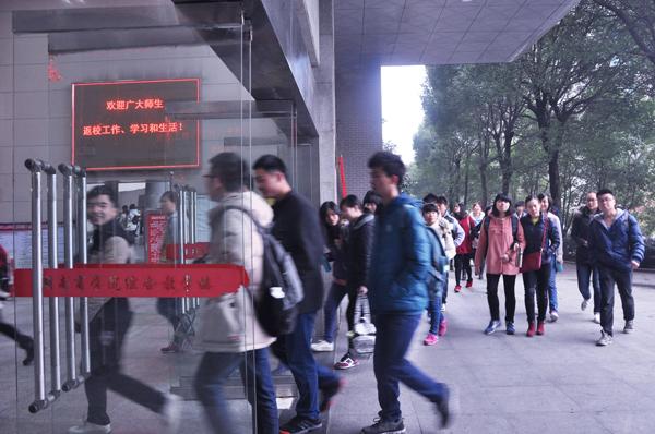 3月2日,新学期开学第一天,校领导王汉青、陈晓红、夏继春、杨虹、彭进清、曾伏秋、陈丽影、王明高、刘国权、聂国卿、廖明星分别到本校区、岭南校区、东马校区检查开学教学工作。 ![]() ![]() ![]() ![]() 在各教学点,校领导检查和了解了学生到课、教师课堂准备、新学期教学工作安排等情况。 校党委书记王汉青来到乐知楼F503教室,听取了计算机与信息工程学院任剑老师讲授的《建筑法规》。课后,王汉青书记与任课老师就教学内容、师生互动等进行探讨。 校长陈晓红在乐知楼E203教室,听取工商管理学院邓胜前老师讲授的《企业物流管理》课程。随后,陈晓红校长来到多媒体教学控制室查看了设备运行情况,并在研究生备考自习室了解了同学们的学习情况。 党政办、学生处、教务处相关负责人陪同检查。 据了解,为保障新学期工作的顺利开展,学校在寒假期间全面建设无线网络,并进入测试阶段;修建了衔接咸嘉宿舍和岭南校区的人行通道,整修了至诚楼前坪,并改造了岭南校区南雅学生公寓周边护栏。(陈璐明 宋晶晶) 责编:巢进文