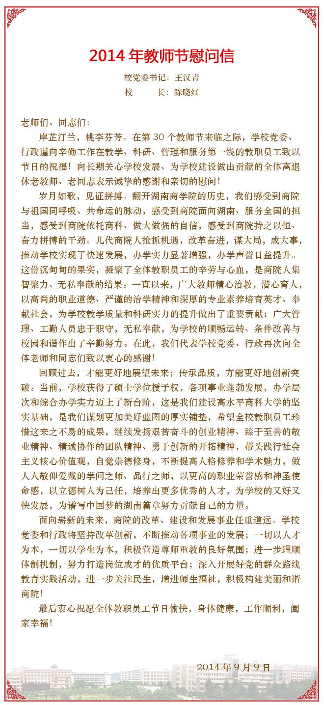 2014年教师节慰问信